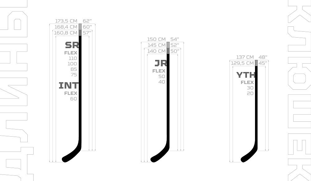 Клюшки семейства "С" обладают верхней точкой прогиба и крюком средней жесткости, что максимально повышает эффективность щелчков и кистевых бросков с полной амплитудой. Для передачи энергии шайбе задействуется вся длина клюшки. Крюк средней жесткости является оптимальным решением: при высокой точке прогиба он задерживает шайбу на некоторое время и максимально передает энергию при ударе. Прямоугольная геометрия рукояти обеспечивает надежный хват клюшки при мощных бросках. Семейство С спроектировано для хоккеистов предпочитающих сильные щелчки по воротам.